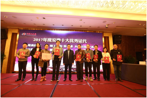 活動期間,張文生為評選出的2017年度安徽轄區(qū)十大優(yōu)秀上市公司、十大優(yōu)秀董秘、十大優(yōu)秀證代頒獎。