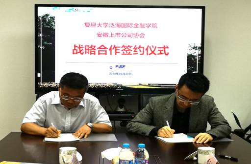 2018年6月20日,我會(huì)與復(fù)旦大學(xué)泛海國(guó)際金融學(xué)院在上海復(fù)旦大學(xué)簽署戰(zhàn)略合作框架協(xié)議。安徽上市公司協(xié)會(huì)副會(huì)長(zhǎng)兼秘書長(zhǎng)袁宏生、復(fù)旦大學(xué)泛海國(guó)際金融學(xué)院院長(zhǎng)錢軍出席簽約儀式。
