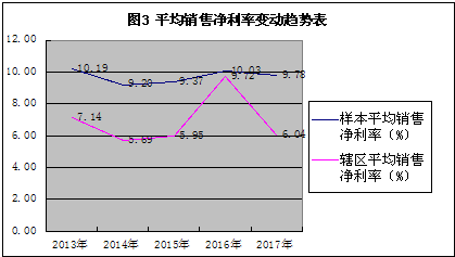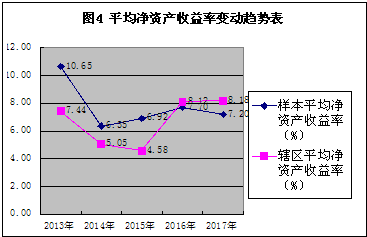 從營(yíng)收和利潤(rùn)變動(dòng)趨勢(shì)看,5年來(lái)混改公司平均營(yíng)業(yè)收入、凈利潤(rùn)變化趨勢(shì)大體呈現(xiàn)出V型,轉(zhuǎn)折點(diǎn)在2015年,調(diào)研發(fā)現(xiàn),上述趨勢(shì)變化很大程度上反映了轄區(qū)鋼鐵、煤炭等大型國(guó)企“去產(chǎn)能”供給側(cè)結(jié)構(gòu)性改革同混合所有制改革結(jié)合的效應(yīng)體現(xiàn)。2016年起營(yíng)業(yè)收入、盈利水平逐步上升,特別是2017年混改公司平均營(yíng)業(yè)收入、凈利潤(rùn)增長(zhǎng)勢(shì)頭好于轄區(qū)總體平均水平(見(jiàn)圖1、2)。這與混改公司混改時(shí)間分布(表1)大體吻合,表明混改一定程度上帶動(dòng)公司業(yè)績(jī)的上升。從盈利指標(biāo)考察,混改公司平均銷售凈利率在2016年達(dá)到峰值,之后呈下滑趨勢(shì),但2017年較2016年平均銷售凈利率下降2.74%,遠(yuǎn)低于轄區(qū)平均下降幅度(37.86%)?;旄墓緝糍Y產(chǎn)收益率變動(dòng)趨勢(shì)呈V型,2015年為折點(diǎn),2017年略有下降,下降幅度大于轄區(qū)平均。這表明混改一定程度上促進(jìn)公司銷售盈利水平的提高,但對(duì)投入資本盈利能力改善效果不理想。馬鋼股份、銅陵有色等大型國(guó)企通過(guò)縮短管理鏈條、引入員工持股等,在2015年的轉(zhuǎn)型中平穩(wěn)過(guò)渡,并保持了經(jīng)營(yíng)業(yè)績(jī)的持續(xù)增長(zhǎng)。