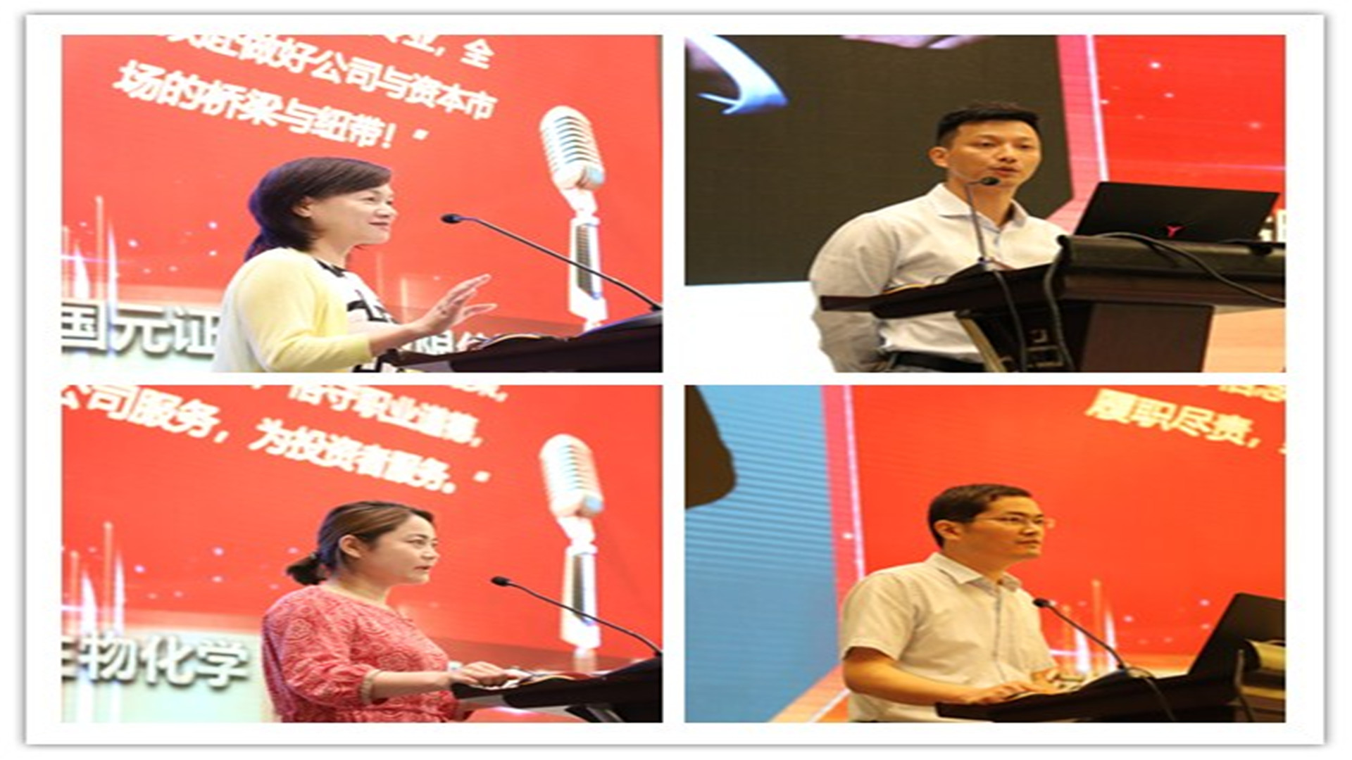 現(xiàn)場邀請國元證券劉錦峰、三七互娛葉威、中糧生化孫淑媛、國風塑業(yè)楊應林作為獲獎代表發(fā)言。