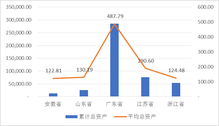截止2018年底,安徽上市公司累計(jì)總資產(chǎn)為12,649.57億元,與之相比,同期廣東省上市公司累計(jì)總資產(chǎn)達(dá)285,847.38億元;山東省為25,125.79億元;江蘇省為76,240.59億元;浙江省為53,650.98億元,安徽上市公司的總規(guī)模相對(duì)較小。