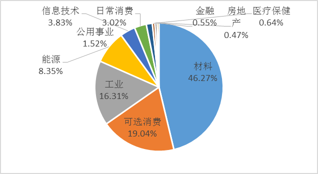 圖2-15 2018年安徽上市公司各行業(yè)營(yíng)業(yè)總收入占比