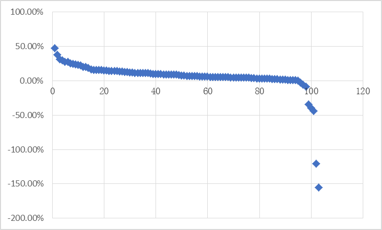 圖2-20 2018年安徽上市公司凈資產(chǎn)收益率分布