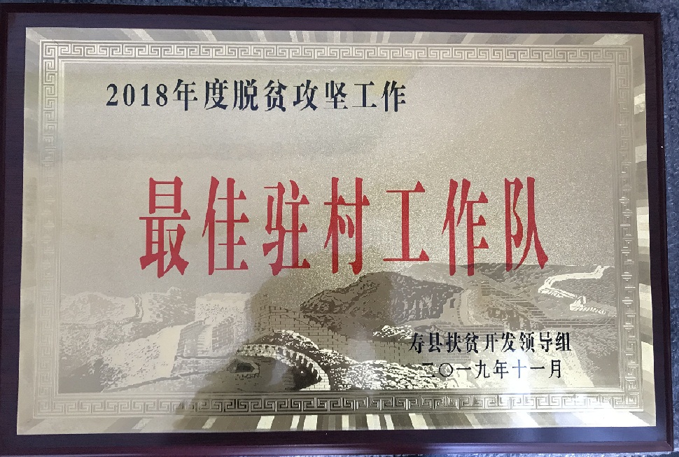 我會(huì)駐村工作隊(duì)獲壽縣2018年度脫貧攻堅(jiān)工作 “最佳駐村工作隊(duì)”榮譽(yù)稱號(hào)