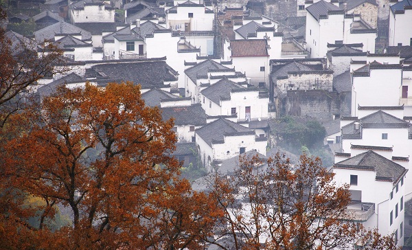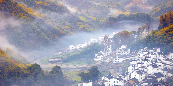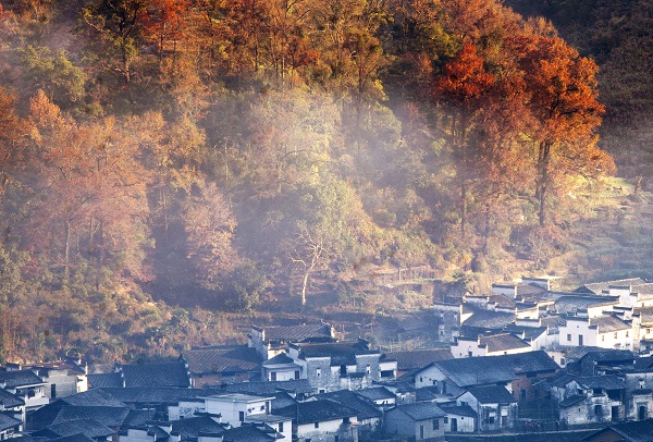 深秋的早晨霧蒙蒙的,那輕紗般的霧隨風(fēng)飄蕩,便把山籠罩在薄霧之中,云霧繚繞,給山披上了一層神秘的面紗。漫步在山林之中,這種蒙蒙朧朧的感覺,有一種置身于仙境之中的愜意,令人心曠神怡。當(dāng)一縷縷陽光從山脊灑向晨霧中,晨霧中呈現(xiàn)如流金般的美麗。徽派古民居在晨霧和炊煙中若隱若現(xiàn),與傲霜紅楓交相輝映,宛如夢(mèng)幻天然畫卷。