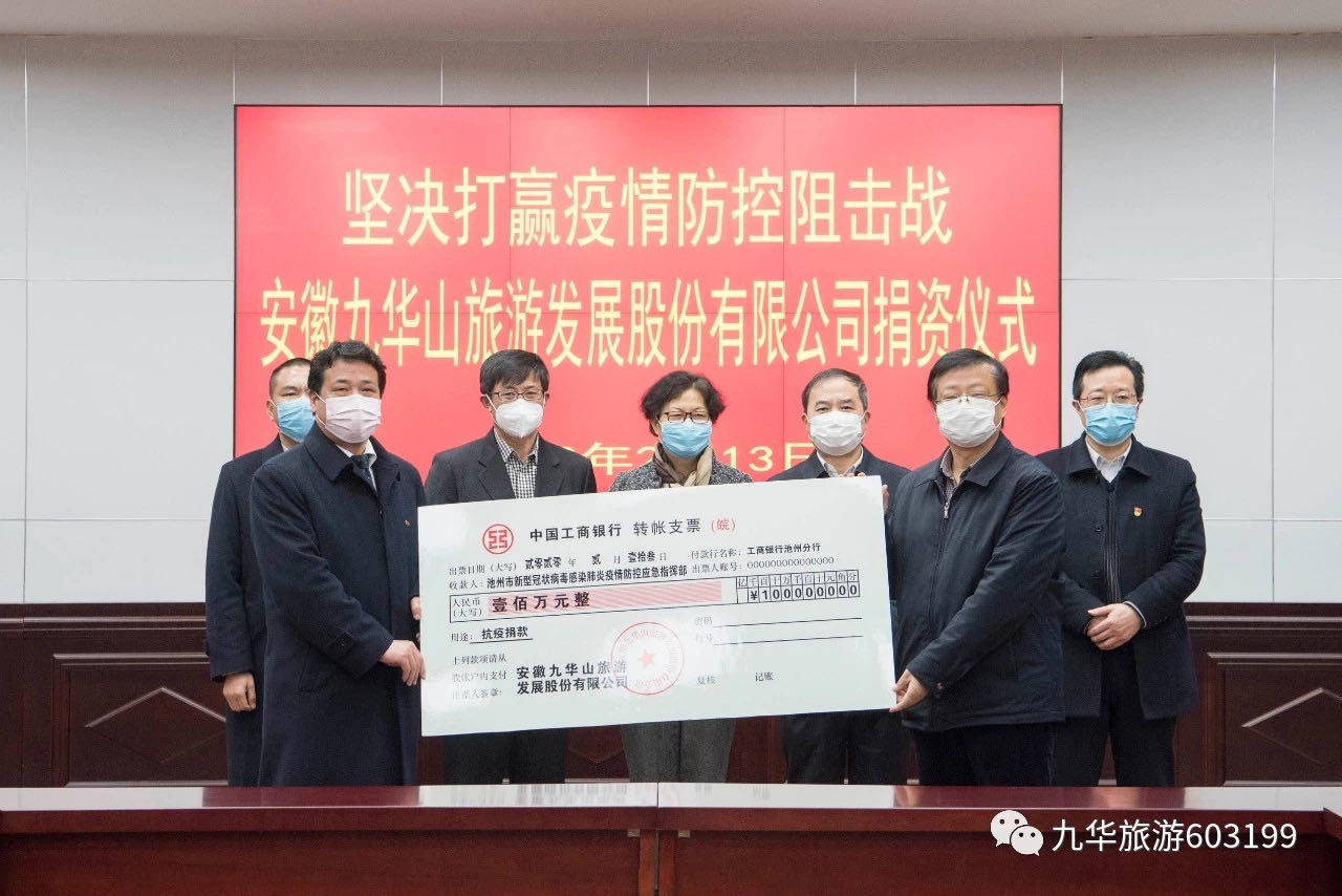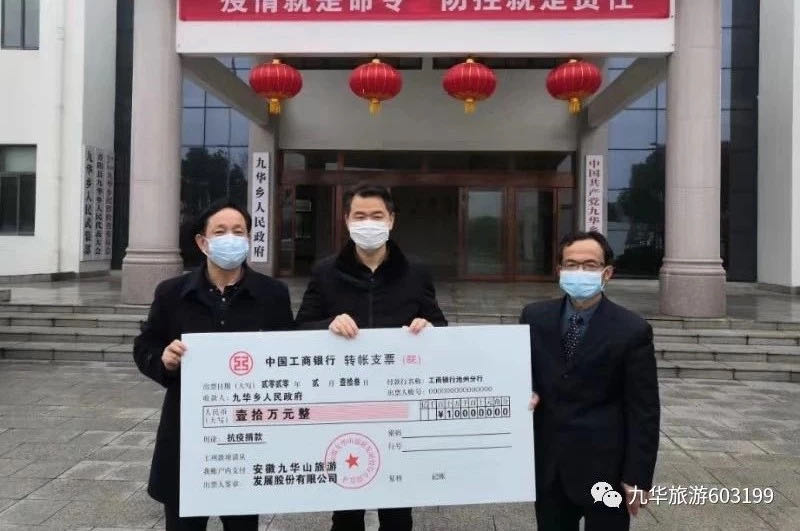 九華旅游彰顯擔當 捐贈150萬抗擊疫情