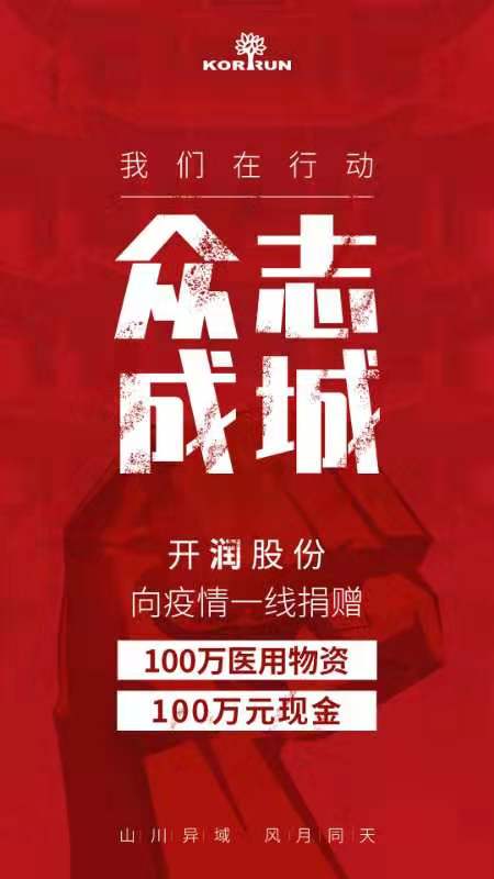 開潤股份向疫情一線捐贈100萬醫(yī)用物資100萬元現金