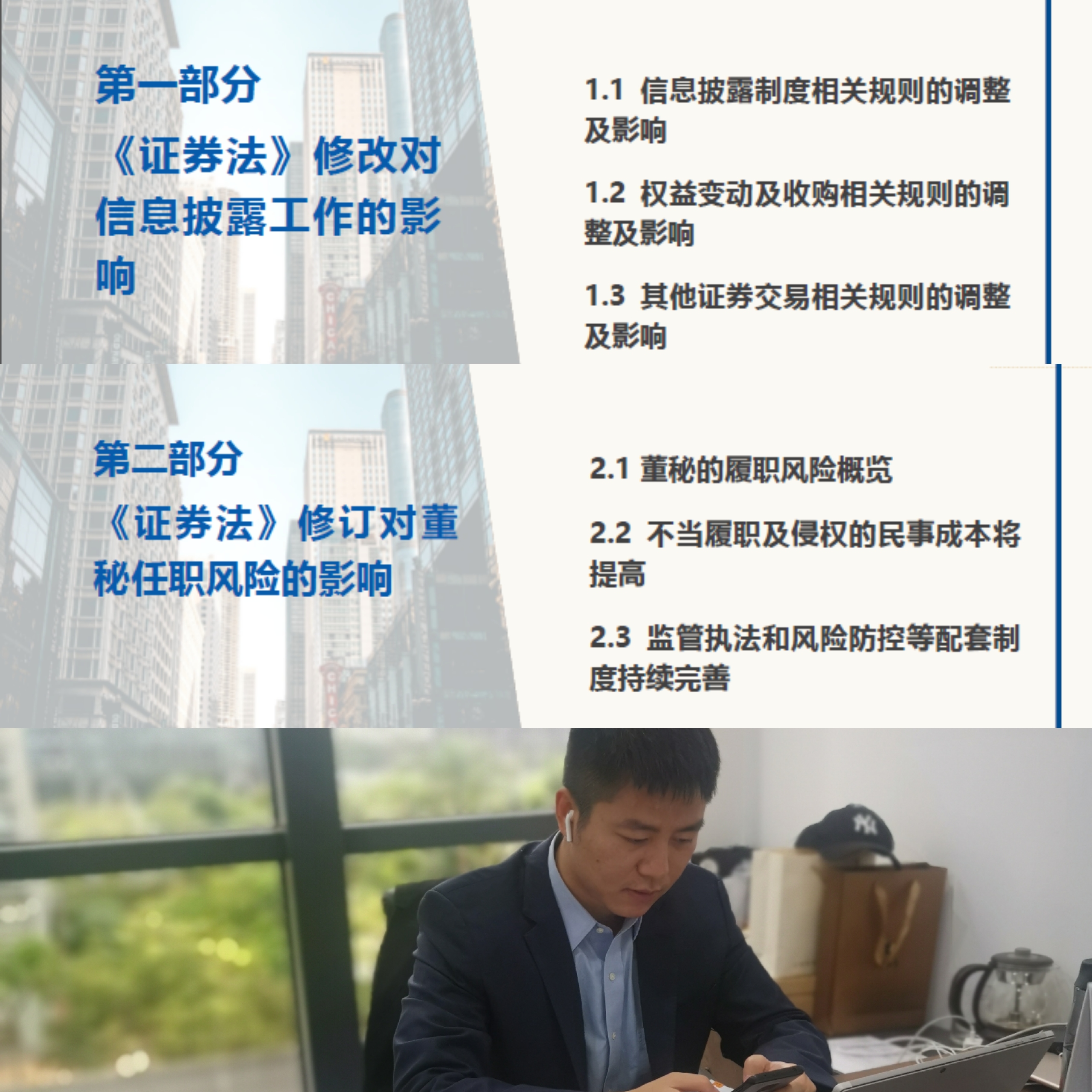 首先,由他山咨詢總經(jīng)理李詩夢做《新<證券法>對上市公司信披的影響及應(yīng)對建議》專題講座。講座圍繞新《證券法》修改對信披工作的影響、董秘任職風(fēng)險等做了詳盡解讀,并對高管履職風(fēng)險應(yīng)對注意要點和線上參會人員做了充分交流討論。