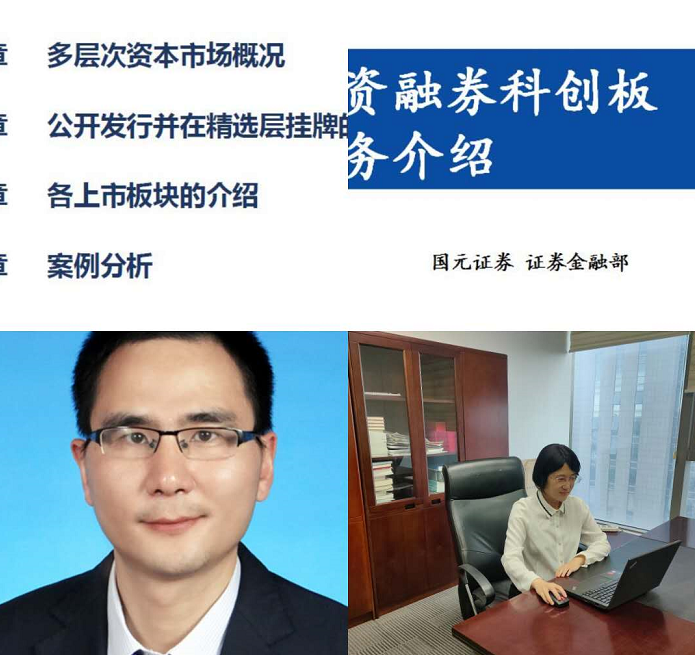 首先,由國元證券投行部總經(jīng)理王晨和證金部王丹妮分別做《新三板轉(zhuǎn)板情況概述》和《科創(chuàng)板融資融券業(yè)務(wù)規(guī)則》專題講座。講座圍繞我國多層次資本市場(chǎng)發(fā)展情況,對(duì)新三板公開發(fā)行和精選層掛牌上市審核分層管理等做了詳盡解讀,并對(duì)科創(chuàng)板融資融券業(yè)務(wù)實(shí)施過程中的注意要點(diǎn)和線上參會(huì)人員做了充分交流討論。