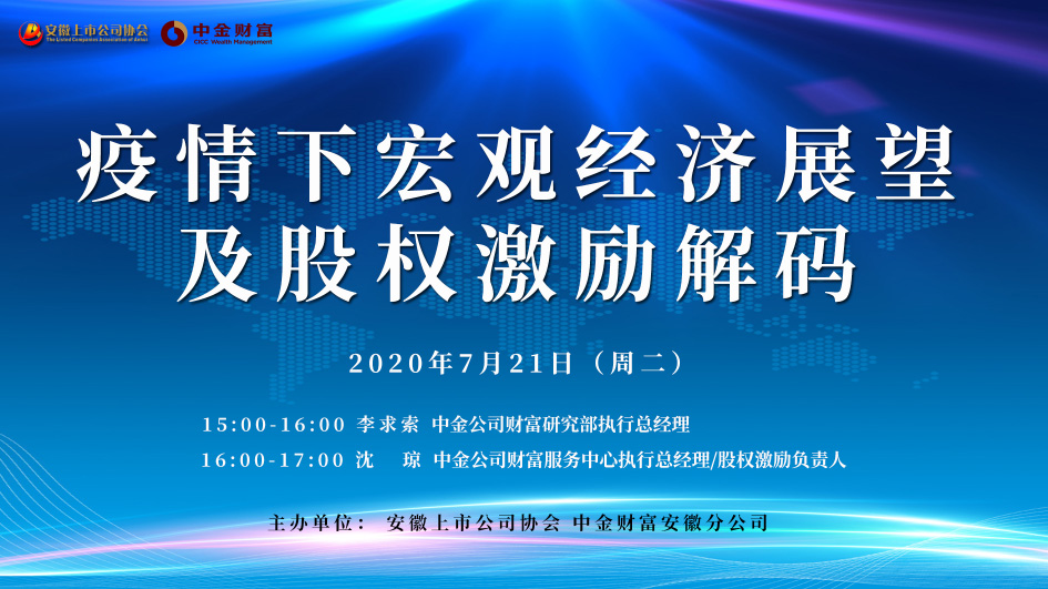 為進(jìn)一步幫助安徽上市公司把脈疫情下宏觀(guān)經(jīng)濟(jì)影響及各行業(yè)發(fā)展前景,以及如何通過(guò)股權(quán)激勵(lì)吸引和激勵(lì)人才、強(qiáng)化企業(yè)競(jìng)爭(zhēng)力,我會(huì)于7月21日舉辦“疫情下宏觀(guān)經(jīng)濟(jì)展望及股權(quán)激勵(lì)解碼”專(zhuān)題講座,會(huì)員單位460余人參與線(xiàn)上學(xué)習(xí)交流。