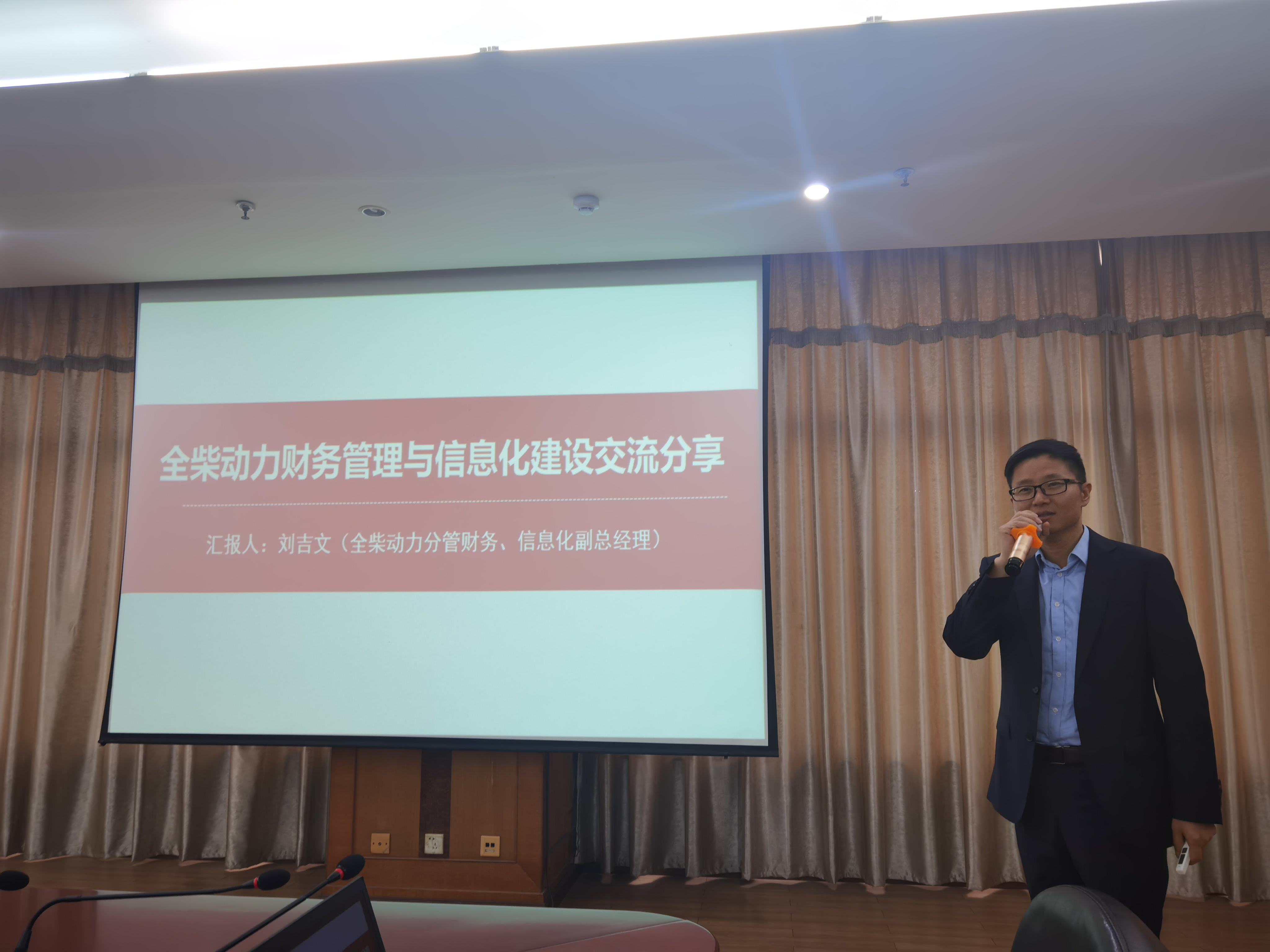 劉吉文委員就全柴動(dòng)力財(cái)務(wù)管理和信息化建設(shè)進(jìn)行主題發(fā)言。他結(jié)合自身企業(yè)發(fā)展中遇到的實(shí)際問(wèn)題就財(cái)務(wù)管理的難點(diǎn)及公司信息化建設(shè)、業(yè)財(cái)一起化建設(shè)的重點(diǎn)做了全面、精彩的分析,并提出應(yīng)對(duì)之道。
