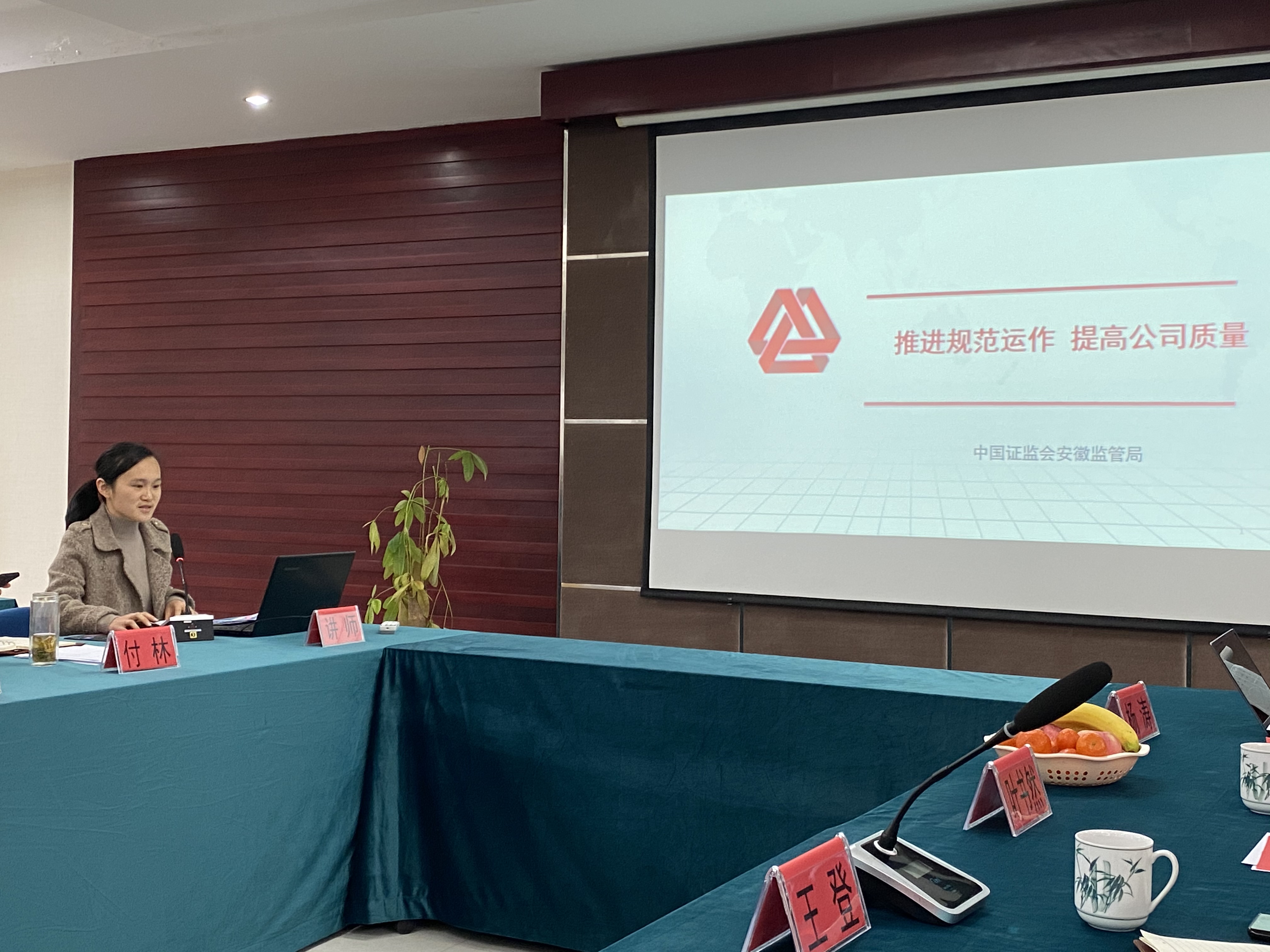 本次“高管講堂”一是邀請安徽證監(jiān)局公司處葉書然圍繞新《證券法》和《刑法》修正案(十一)、上市公司規(guī)范治理、董監(jiān)高履職規(guī)范、違規(guī)處罰等作《推進公司治理,提高上市公司質量》專題講座;二是由協(xié)會證代工作委員會主任委員、科大國創(chuàng)證代楊濤圍繞上市公司年報編制披露、合規(guī)經營、資本運作做經驗分享;三是組織華業(yè)香料全體董監(jiān)高現場集體學習上市公司治理準則,舉行上市公司規(guī)范運作承諾書的簽署儀式。