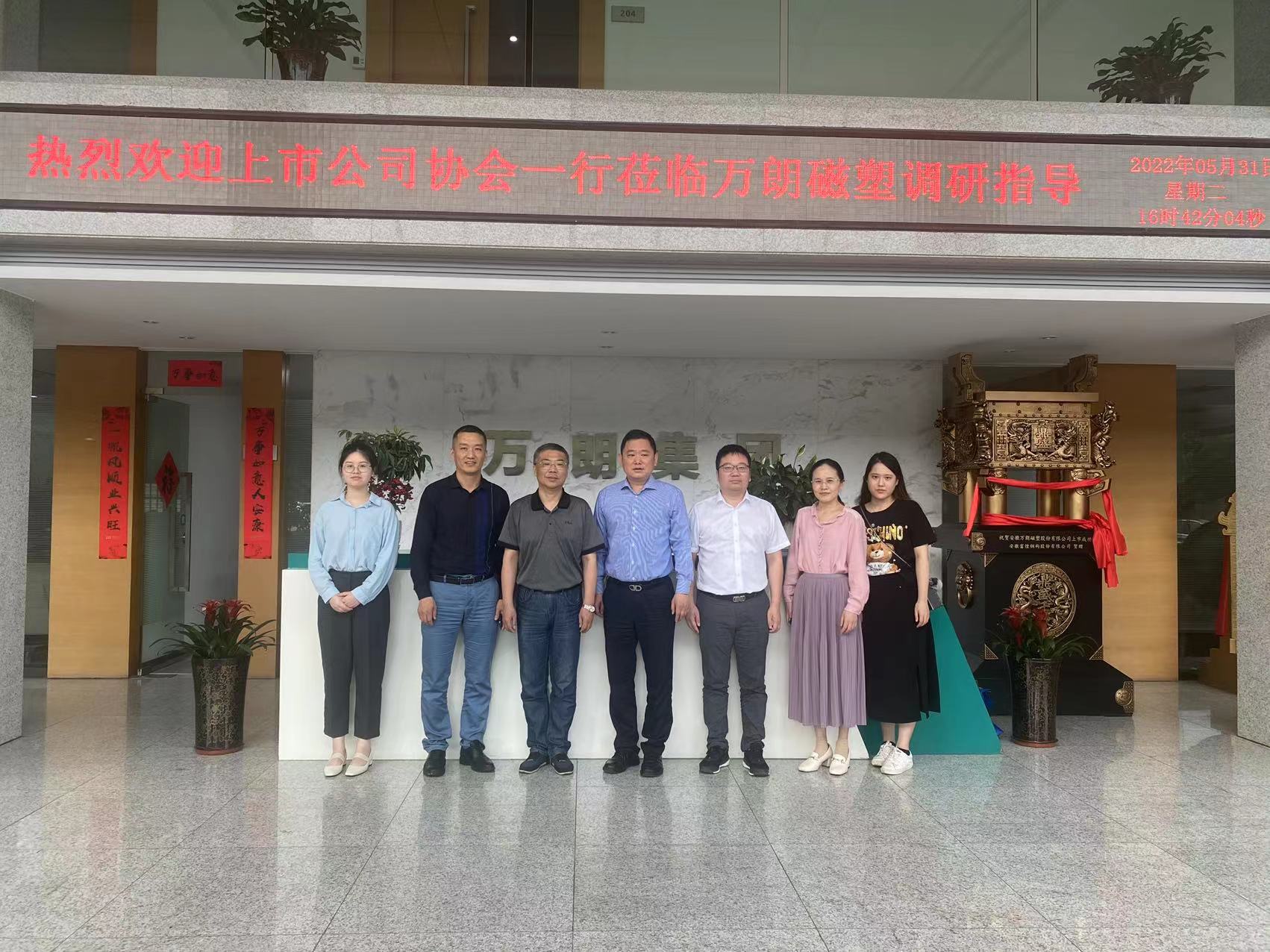 5月31日,為加強(qiáng)與會(huì)員的溝通交流,促進(jìn)會(huì)員協(xié)作發(fā)展,安徽上市公司協(xié)會(huì)副會(huì)長(zhǎng)、秘書(shū)長(zhǎng)袁宏生一行拜訪(fǎng)會(huì)員單位安徽萬(wàn)朗磁塑股份有限公司開(kāi)展調(diào)研交流,受到公司董事長(zhǎng)時(shí)乾中、董秘兼財(cái)務(wù)總監(jiān)萬(wàn)和國(guó)、證代張小梅等的熱情接待。