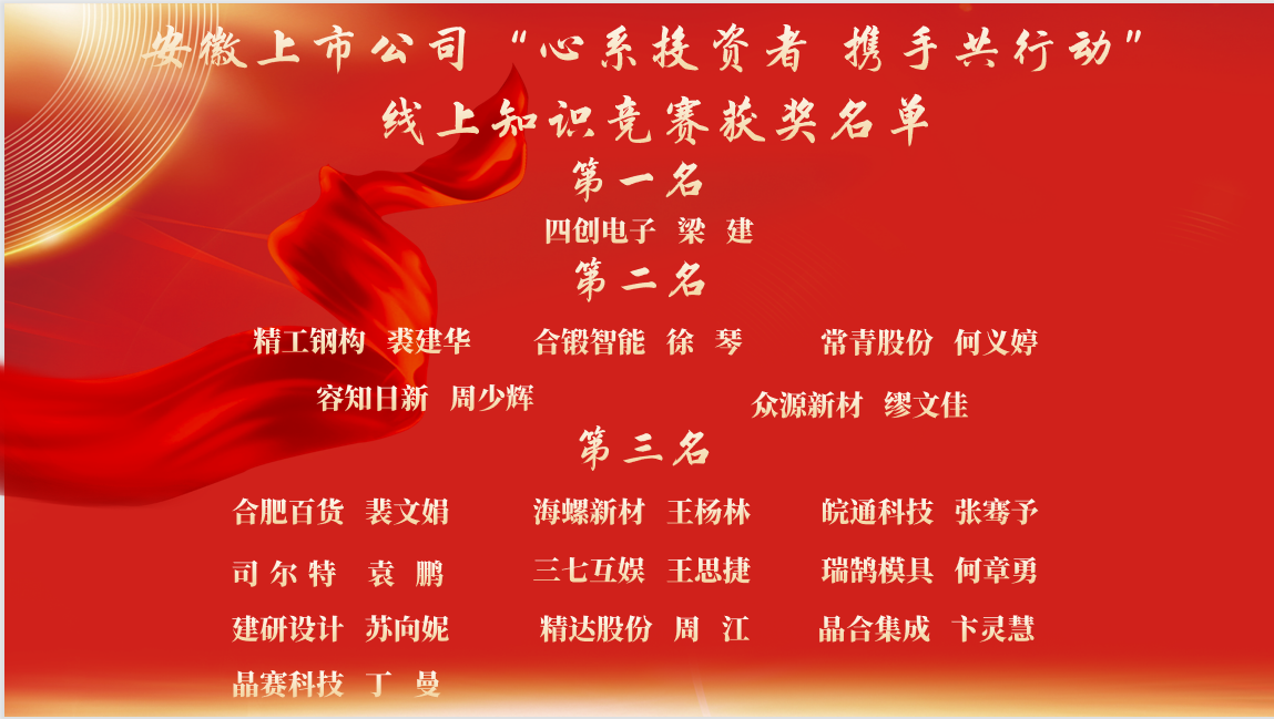 附:安徽上市公司“心系投資者 攜手共行動(dòng)”線上知識(shí)競(jìng)賽獲獎(jiǎng)名單