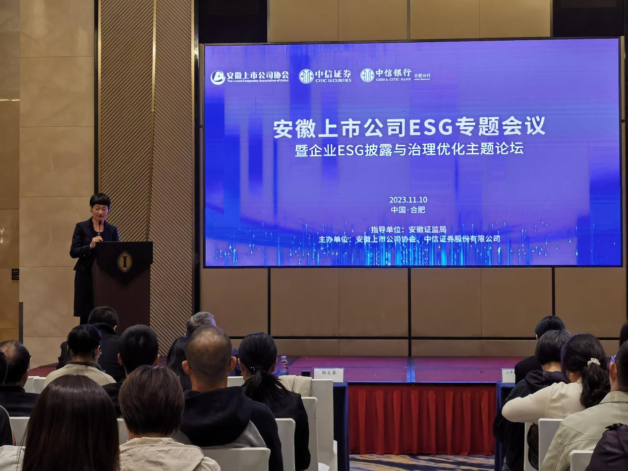 為深入推進(jìn)ESG理念在企業(yè)中的貫徹實(shí)施,幫助安徽上市公司精準(zhǔn)把握ESG披露標(biāo)準(zhǔn)和優(yōu)化策略,助力企業(yè)全面規(guī)避業(yè)務(wù)風(fēng)險(xiǎn)、把握資本市場機(jī)遇,實(shí)現(xiàn)高質(zhì)量發(fā)展。在安徽證監(jiān)局的指導(dǎo)下,我會聯(lián)合中信證券于11月10日在合肥成功舉辦“安徽上市公司ESG專題會議暨企業(yè)ESG披露與治理優(yōu)化主題論壇”活動(dòng),轄區(qū)50余家上市公司和金融機(jī)構(gòu)代表共120余人參會。