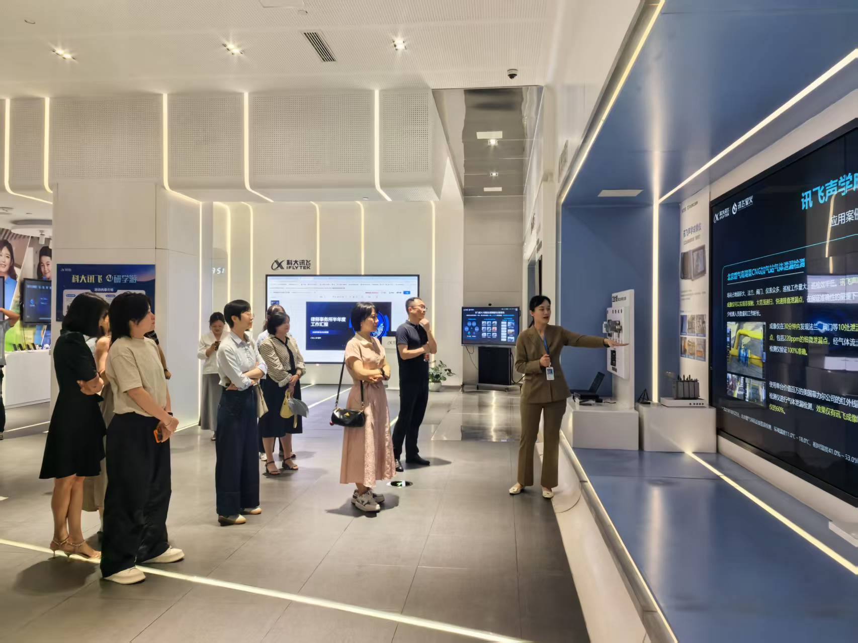 會前,與會人員共同參觀了科大訊飛展廳,近距離感受了科大訊飛的企業(yè)文化與創(chuàng)新成果。