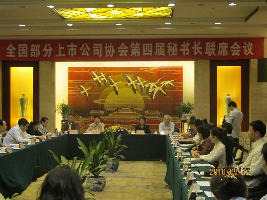 第四屆全國部分上市公司協(xié)會秘書長聯(lián)席會議于2010年9月26日——29日在陜西西安召開。本次會議由陜西上市公司協(xié)會承辦。此次共有來自北京、浙江、山東、遼寧、黑龍江、江西、福建、廣西、甘肅、四川、武漢、大連、廈門、云南、寧波、廣東、重慶、安徽和陜西等19家上市公司協(xié)會的秘書長和工作人員30人參加。