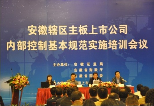 實施內(nèi)控規(guī)范是提高上市公司質(zhì)量的一項基礎(chǔ)性工作,為使轄區(qū)主板上市公司及其控股股東充分認(rèn)識到建立健全內(nèi)部控制工作的重要性和迫切性,推動上市公司規(guī)范運作, 2012年4月20日,由安徽證監(jiān)局、安徽省財政廳、安徽省國資委主辦,安徽上市公司協(xié)會協(xié)辦的轄區(qū)主板上市公司內(nèi)部控制基本規(guī)范實施培訓(xùn)會在合肥舉辦。來自轄區(qū)46家主板上市公司的150余名董事、董秘和高管人員參加了培訓(xùn)。