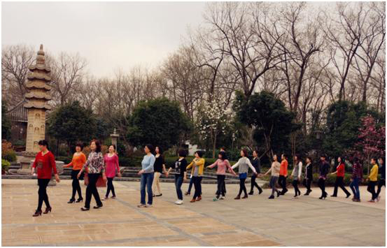 孫愛(ài)萍老師帶領(lǐng)與會(huì)代表在三塔廣場(chǎng)做健康有氧運(yùn)動(dòng)操